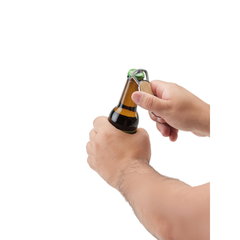 MEEKO. Kovová klíčenka v kulatém tvaru ze zinku a bambusu